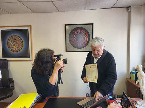 Recientemente nos visto el Director de Cine Señor LIU HAIPING. El señor Lui viajo a Sud America para filmar un documental acerca del desarrollo de la acupuntura en la región según su opinión Chile es el país donde mejor se ha desarrollado el uso legal de la acupuntura y felicitó a nuestra escuela por ser pionera en difusión de la acupuntura con la graduación de mas de 1000 profesionales y contribuir a la implementación de la acupuntura como una profesión de Auxiliar de Salud en Chile.